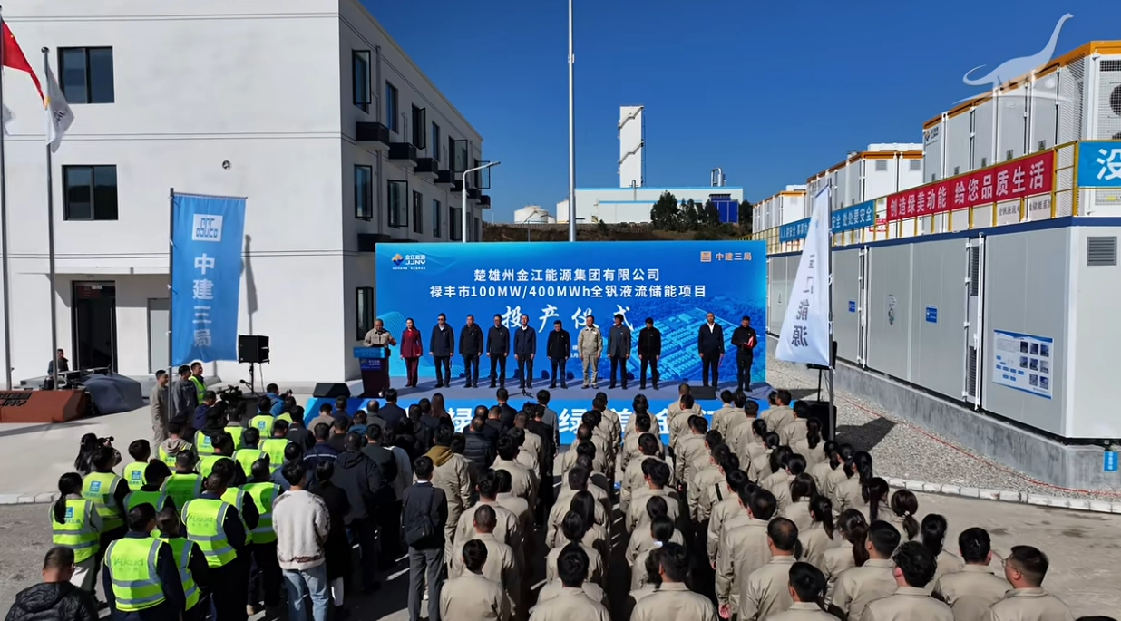 11月28日,禄丰市100MW/400MWh全钒液流储能项目正式投产,该项目是云南省首个落户电网侧的全钒液流电池共享储能电站,由楚雄州金江能源集团有限公司投资,采用全球领先、拥有完全自主知识产权的全钒液流电池储能系统,从进场施工到投产仅用了232天,创造了新的“禄丰速度”,为全省储能多元化发展树立了示范标杆。